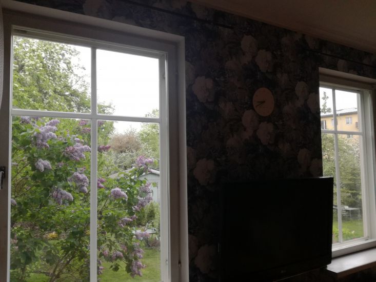 This is a 32 sqm studio with a garden view. / Hubane 32 m2 aiavaatega korter. Stuudios on 2 tugitool, 2-kohaline lai voodi, laiekraan teler 50 kanaliga, kohvi- ja söögilaud. Köök on varustatud söögitegemiseks ja söömiseks (külmik, pliit, mikrolaineahi, kohvimasin, potid, pannid, nõud, naod-kahvlid, klaasid jne) vajalikuga.